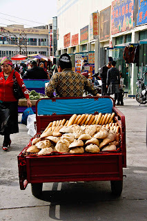 The breads of Xinjiang are one of the seven wonders of the culinary world, extraordinary in their variety and their rustic taste. And yet like creatures of ephemeral beauty - butterflies, or rare flowers for example - they last but one day, and then transmogrify into hard and inedible bread platters you could quite reasonably use in place of china plates. Eat it fresh out of the oven, or not at all.