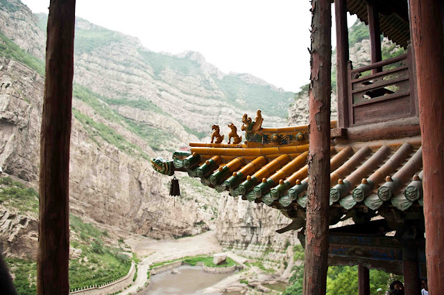 I'm at the Hanging Temple (Xuánkōng Sì 悬空寺) in Jingxia Gorge, northern Shanxi Province, a legendary place built by a single monk, Liao Ran. I'm thinking he was fond of solitude, and heights. The temple and monastery clings to the western cliff face of the gorge, high above the water line and occasional floods, and far below the snow that sits atop the mountains in winter.
